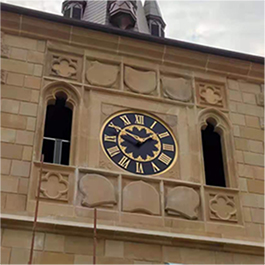 塔鐘機芯采用我公司自主研制開發的四連桿式機芯,即一臺主機帶動四臺分機運機運轉,從而很好的保證了四面塔鐘計時的同步性。